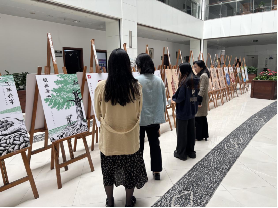 展览现场,支部党员驻足细观、交流感悟。本次展览以“赓续廉洁文脉、涵养崇廉风尚”为核心集中呈现离退休老干部书画作品与青年学子廉洁文创佳作,实现银发风骨与青春创意的跨时空对话,生动诠释“进德修业、与时偕行”的校训精神与浙财清廉文化内涵。